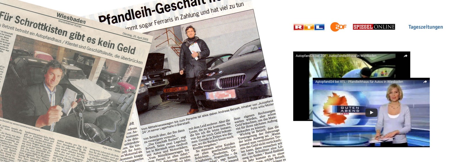 Die Fernsehsender RTL und ZDF haben über unsere Autopfandleihe bereits in Ihrem TV Programm berichtet. Einen Ausschnitt dieser beiden Sendungen und diverse Zeitungsberichte können Sie sich an dieser Stelle anschauen.
